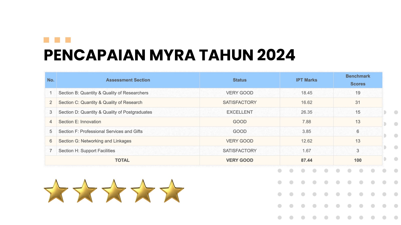Malaysia Research Assessment (MyRA®) ialah instrumen penilaian yang dibangunkan oleh Kementerian Pendidikan Tinggi bagi mengukur tahap kecemerlangan penyelidikan Institusi Pendidikan Tinggi (IPT) di Malaysia. MyRA menggunakan pendekatan analisis berasaskan input, proses, output, hasil dan impak dalam bidang Penyelidikan, Pembangunan, Pengkomersialan dan Inovasi (RDC&I). Penilaian ini melibatkan pengisytiharan data yang menyeluruh daripada pihak pengurusan institusi serta semua staf akademik yang aktif. Pengumpulan data RDC&I yang lengkap dan bersepadu amat penting sebagai asas pemantauan prestasi, penanda aras dan perancangan strategik IPT serta penggubalan dasar Pendidikan Tinggi Negara.